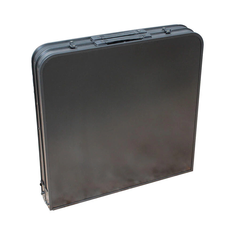 A folding camping table with a set of 4 folding stools which are stored neatly inside the table when folded for easy transportation and storage. The all-aluminium construction of this table makes it weatherproof and heat-resistant. The heat-resistant aluminium table surface allows this table to be used as a surface for cooking when not in use as a picnic table. Ideal for a young family looking for a table set that is multi-functional. • Tabletop: Aluminium sheet with aluminium edging for heat and weather resistance.