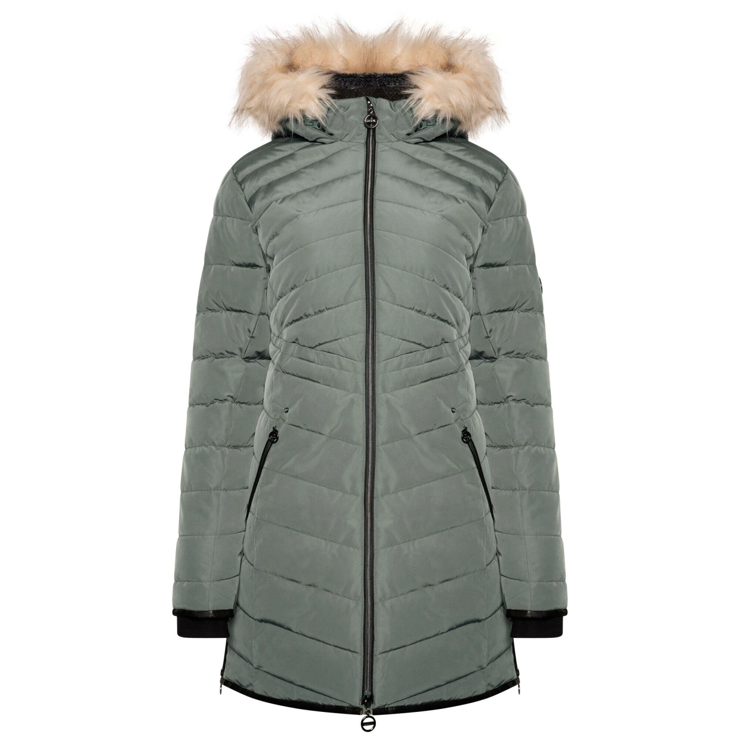 The Dare 2b Striking III Jacket. Made of waterproof and breathable fabric with a durable water repellent finish to keep you fully protected. Fashion meets function with an on-trend padded silhouette and removable faux fur hood trim. This product is made using recycled plastic bottles.