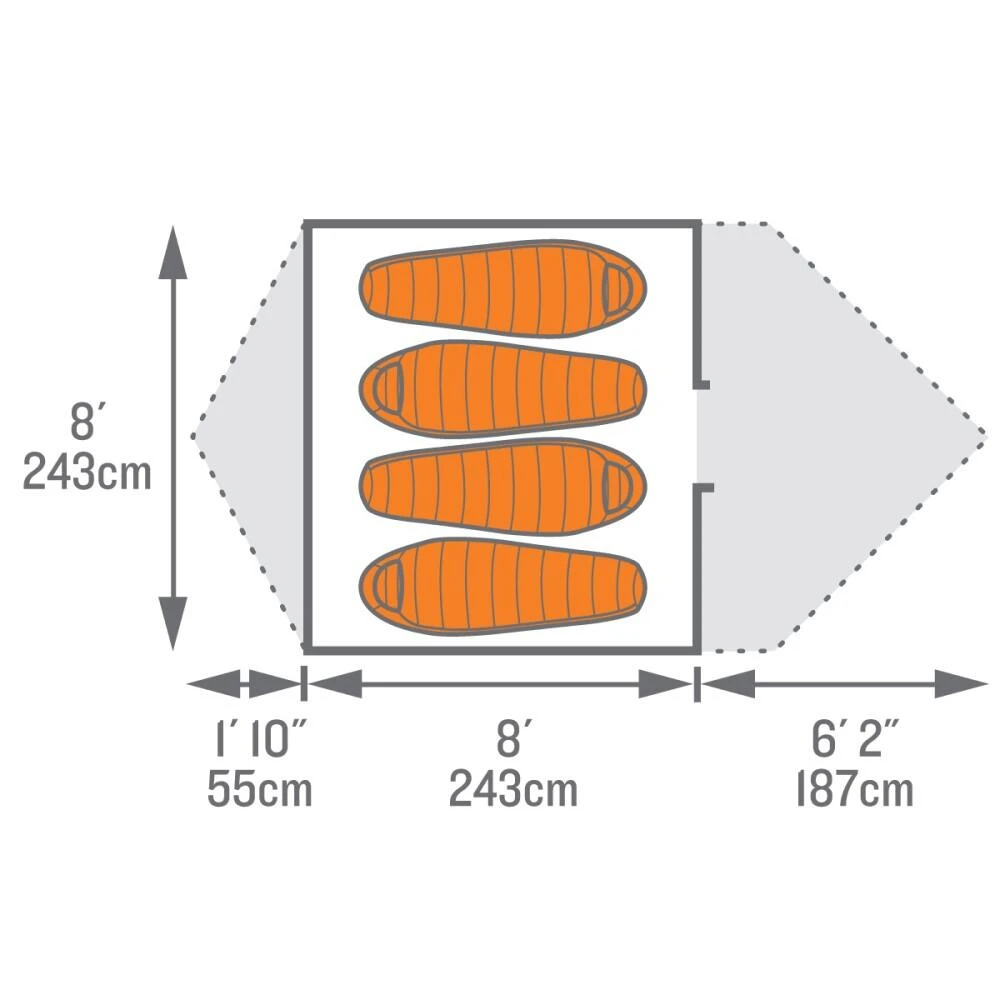 Featuring a large double door for easy access the tents main feature is its huge Vestibule which provides a perfect area to store all of your camping supplies and comes with duel entry mesh doors for ease.
