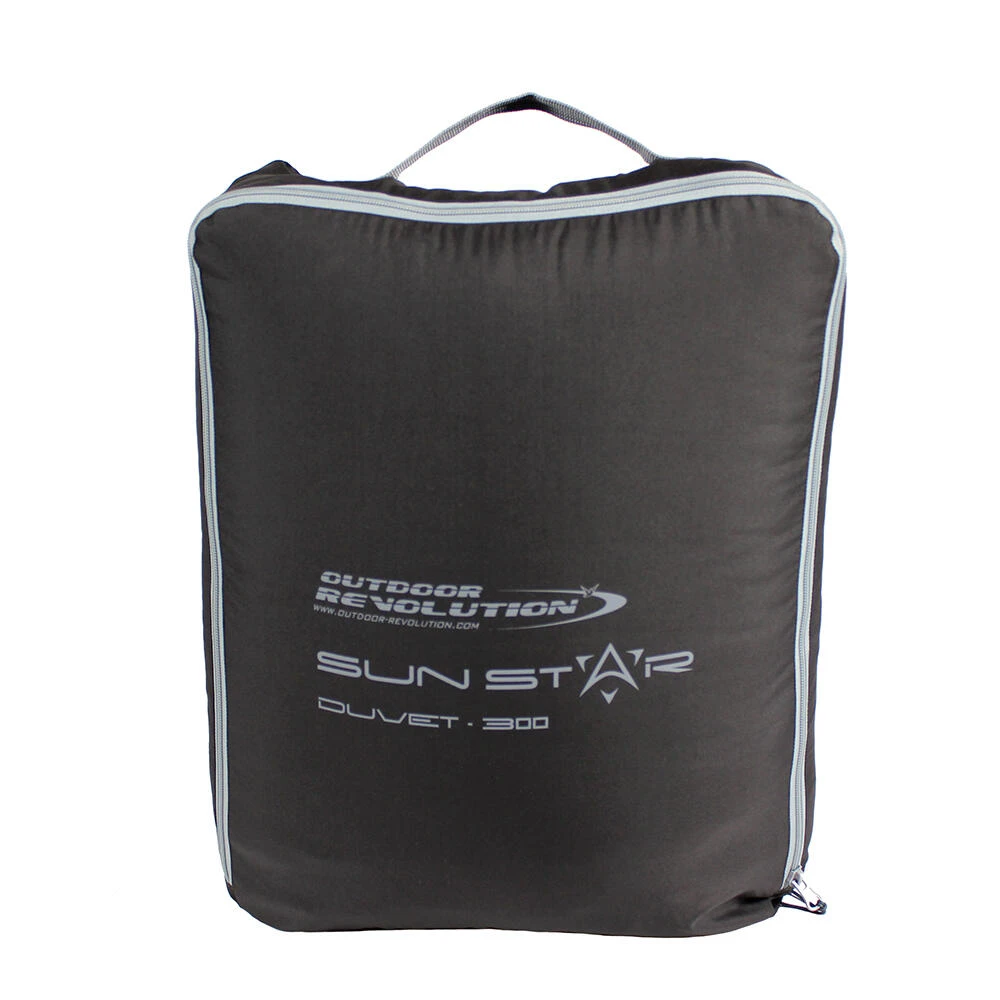 The Sun Star Duvet 300 is an alternative to a sleeping bag, if the user chooses to use it with a flat sheet within a campervan, motorhome or caravan on a warmer night.